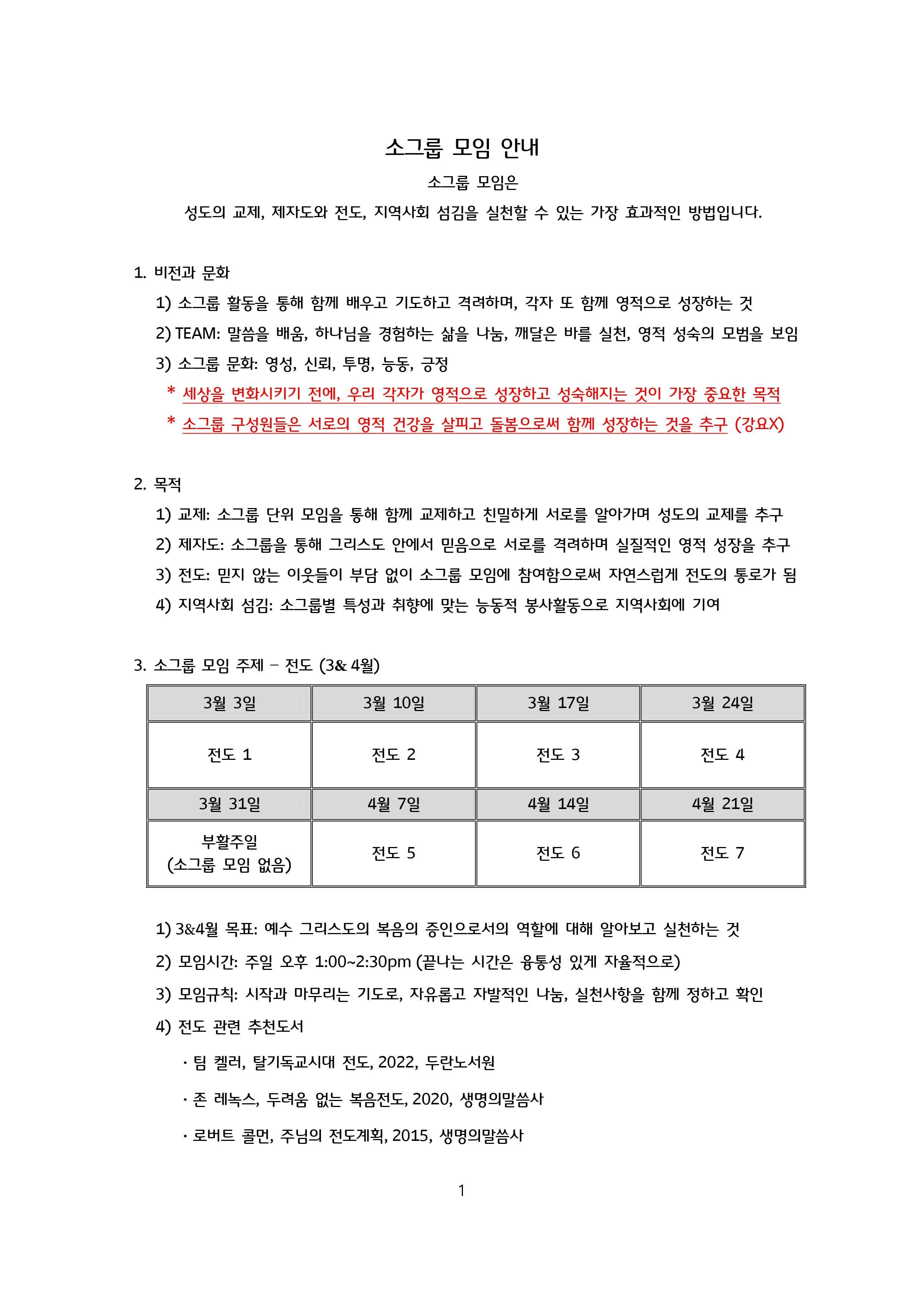 소그룹 모임 안내